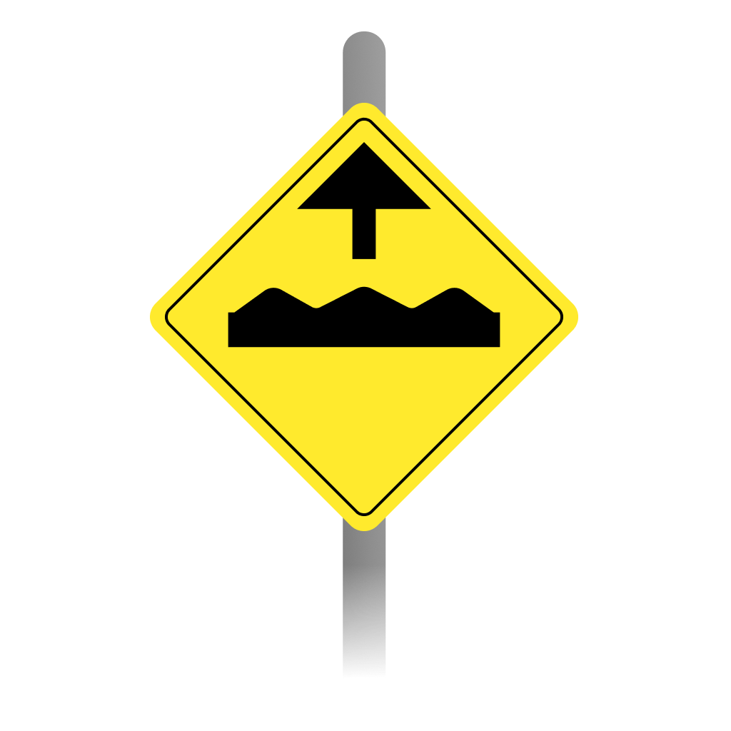 Bump or uneven pavement on the road ahead. Slow down and keep control of your vehicle. | Warning Signs | 2024-06-06 13:33:17 | Edit |