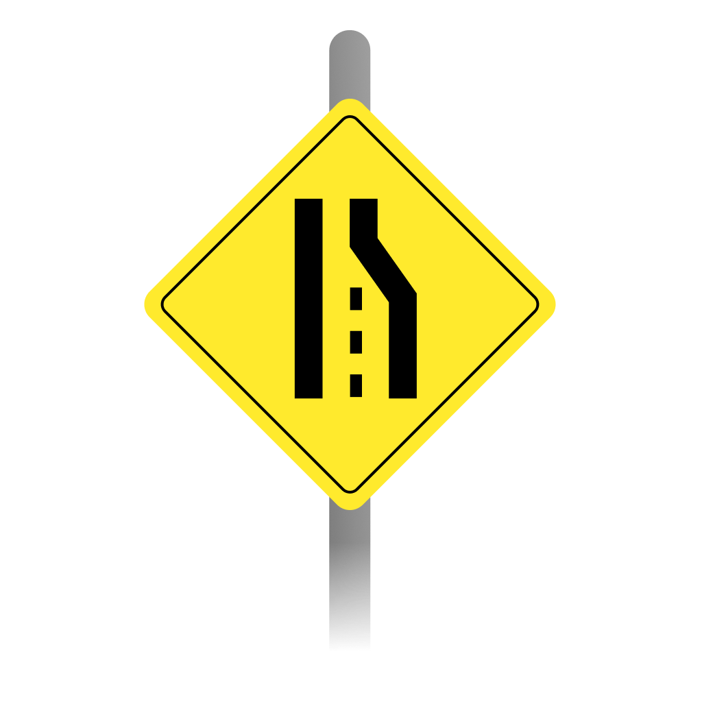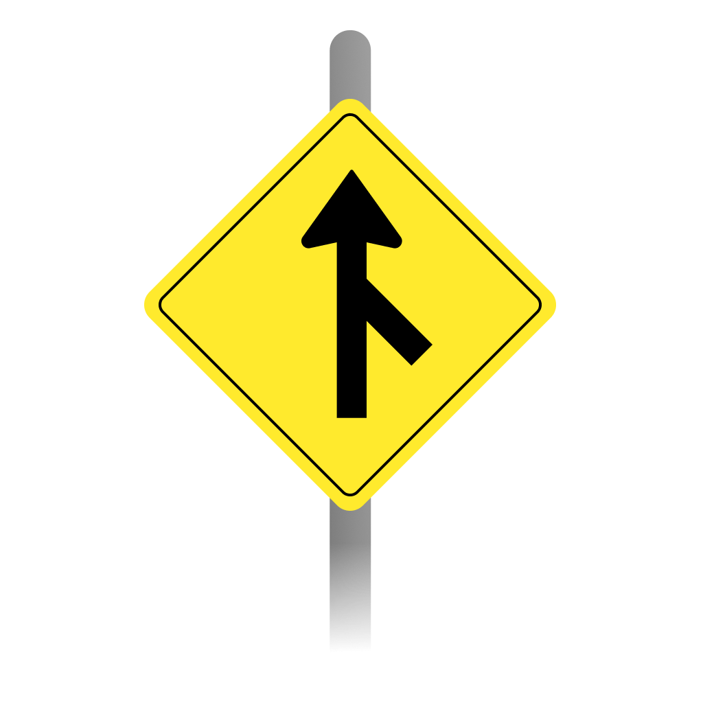 Right lane ends ahead. If you are in the right-hand lane, you must merge safely with traffic in the lane to the left. | Warning Signs | 2024-06-06 13:33:17 | Edit |