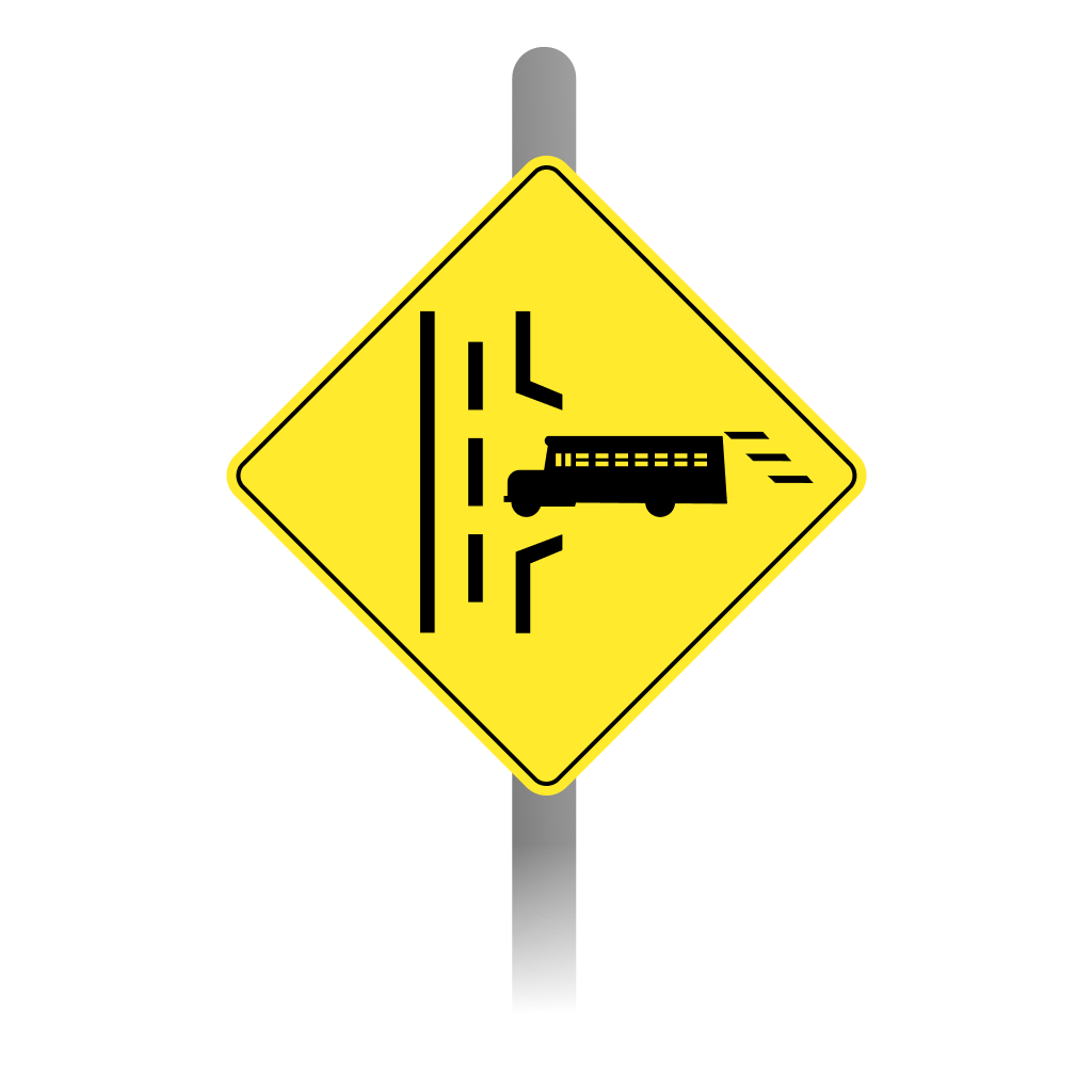 Indicates an upcoming bus entrance on the right and vehicles should be prepared to yield to buses entering the roadway. | Warning Signs | 2024-06-06 13:48:43 | Edit |