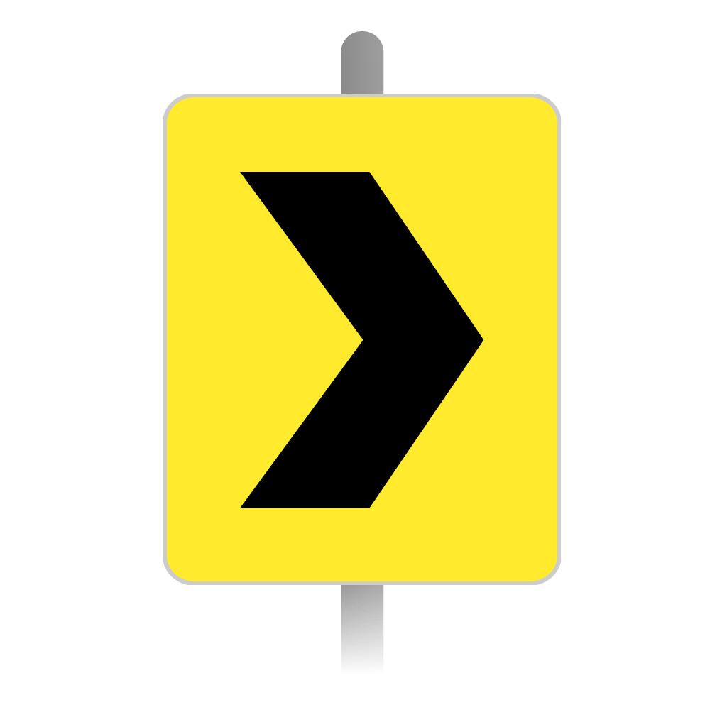 Chevron (arrowhead) signs are posted in groups to guide drivers around sharp curves in the road. | Warning Signs | 2024-06-06 13:48:43 | Edit |