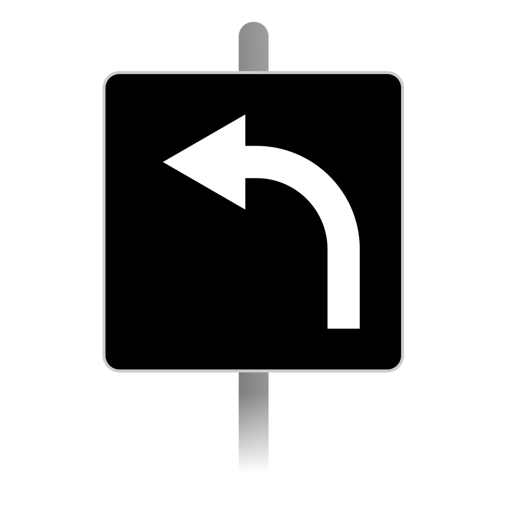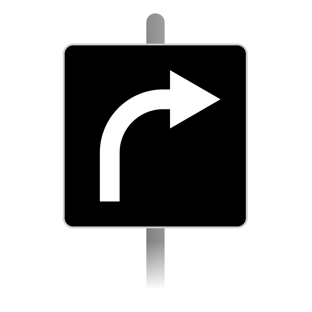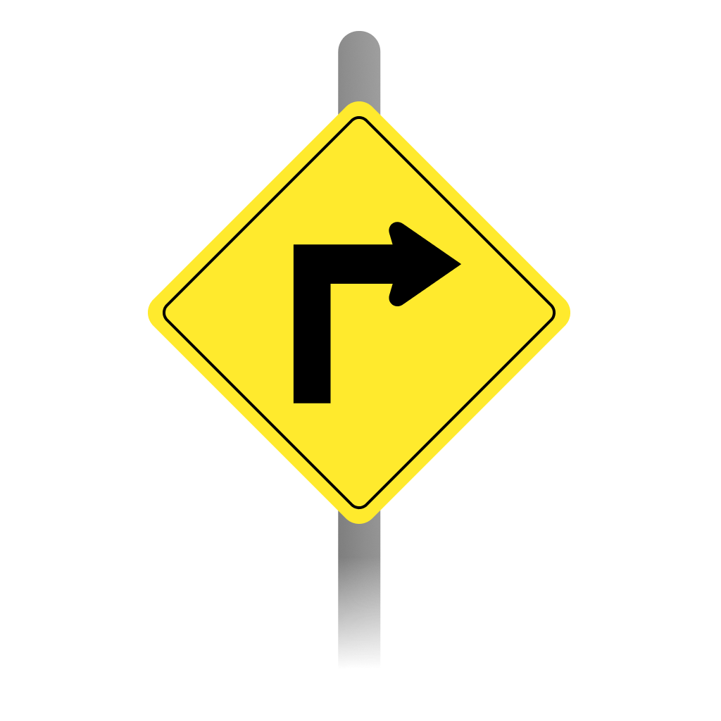 Sharp turn or bend in the road in the direction of the arrow. The checkerboard border warns of danger. Slow down; be careful. | Warning Signs | 2024-06-06 13:48:43 | Edit |
