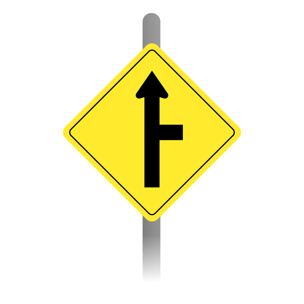 Intersection ahead. The arrow shows which direction of traffic has the right-of-way. | Warning Signs | 2024-06-06 13:48:43 | Edit |
