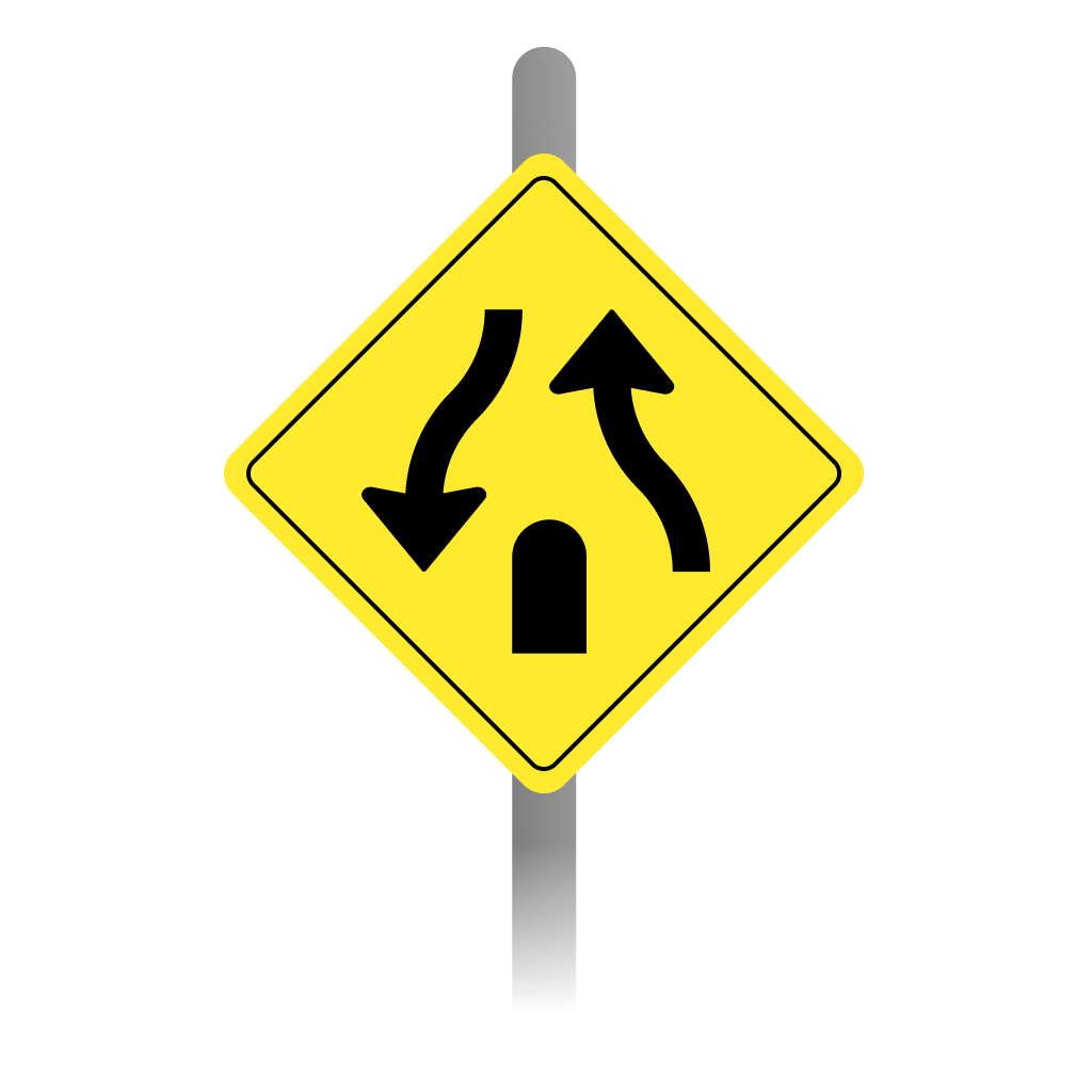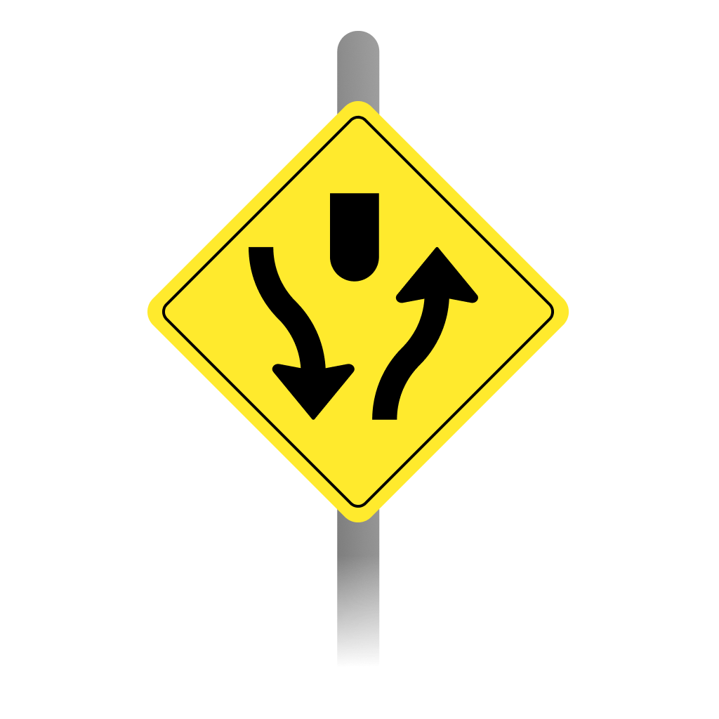 Road branching off ahead. | Warning Signs | 2024-06-06 13:48:43 | Edit |