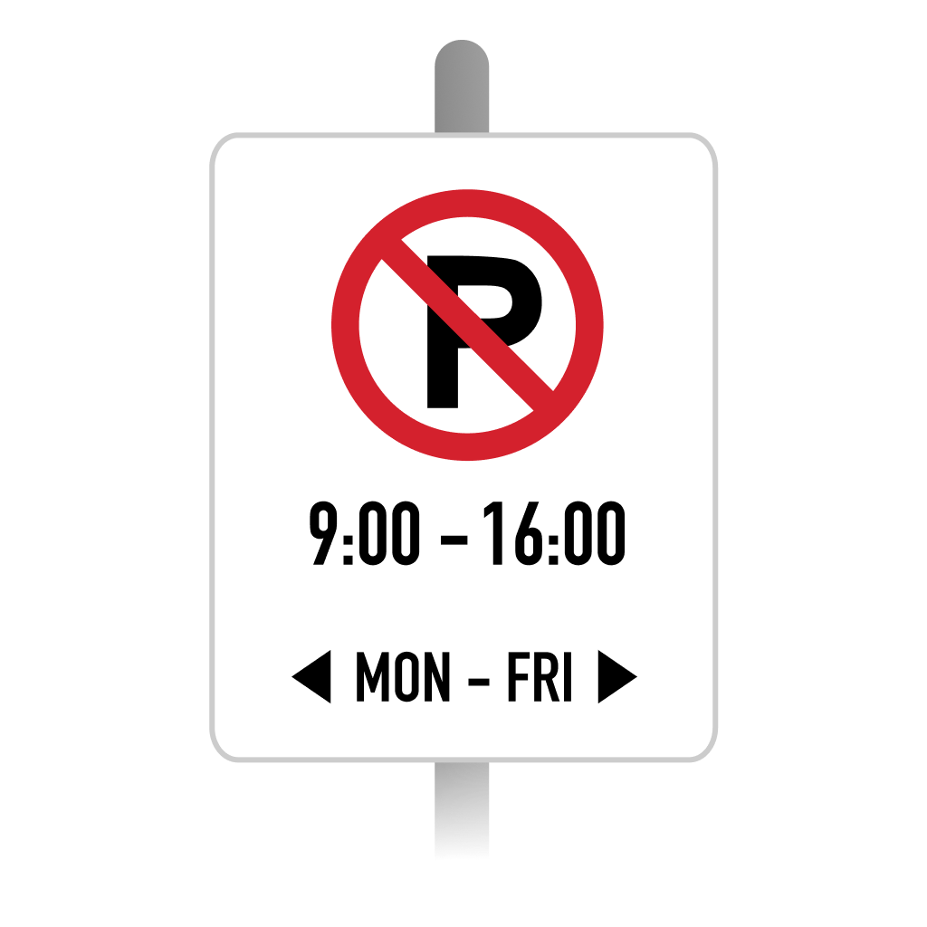 No parking from Monday 9:00 to Friday 16:00. | Prohibitory Road Signs | 2024-06-07 10:59:35 | Edit |