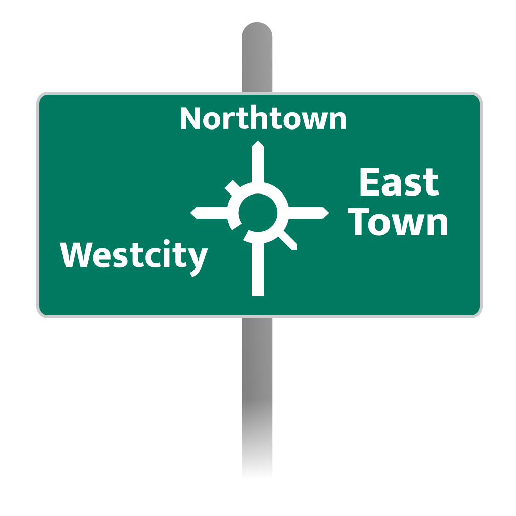 Shows the upcoming roundabout exits and where they will take you. | Lane Use Signs | 2024-06-07 11:41:21 | Edit |
