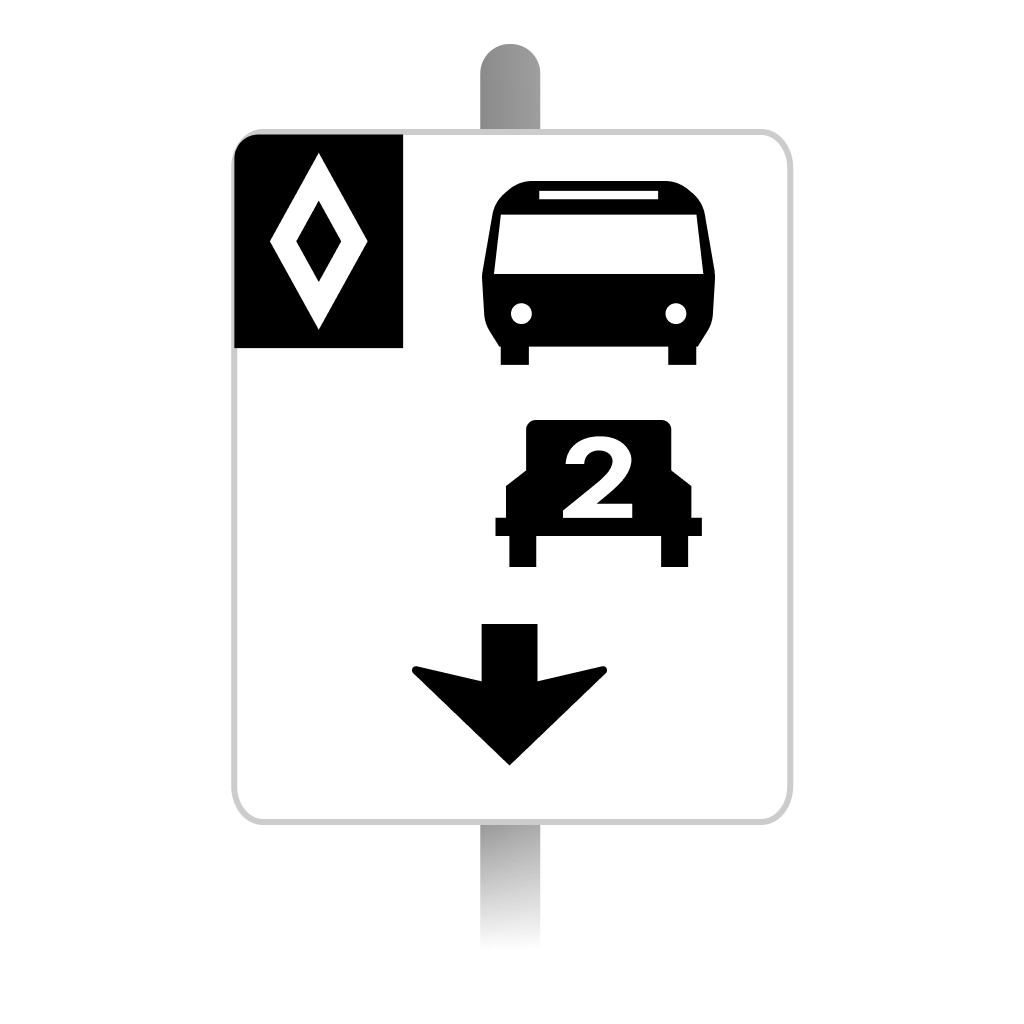 Only public vehicles such as buses, or passenger vehicles carrying a specified minimum number of passengers, may use this lane. | Lane Use Signs | 2024-06-07 11:41:21 | Edit |