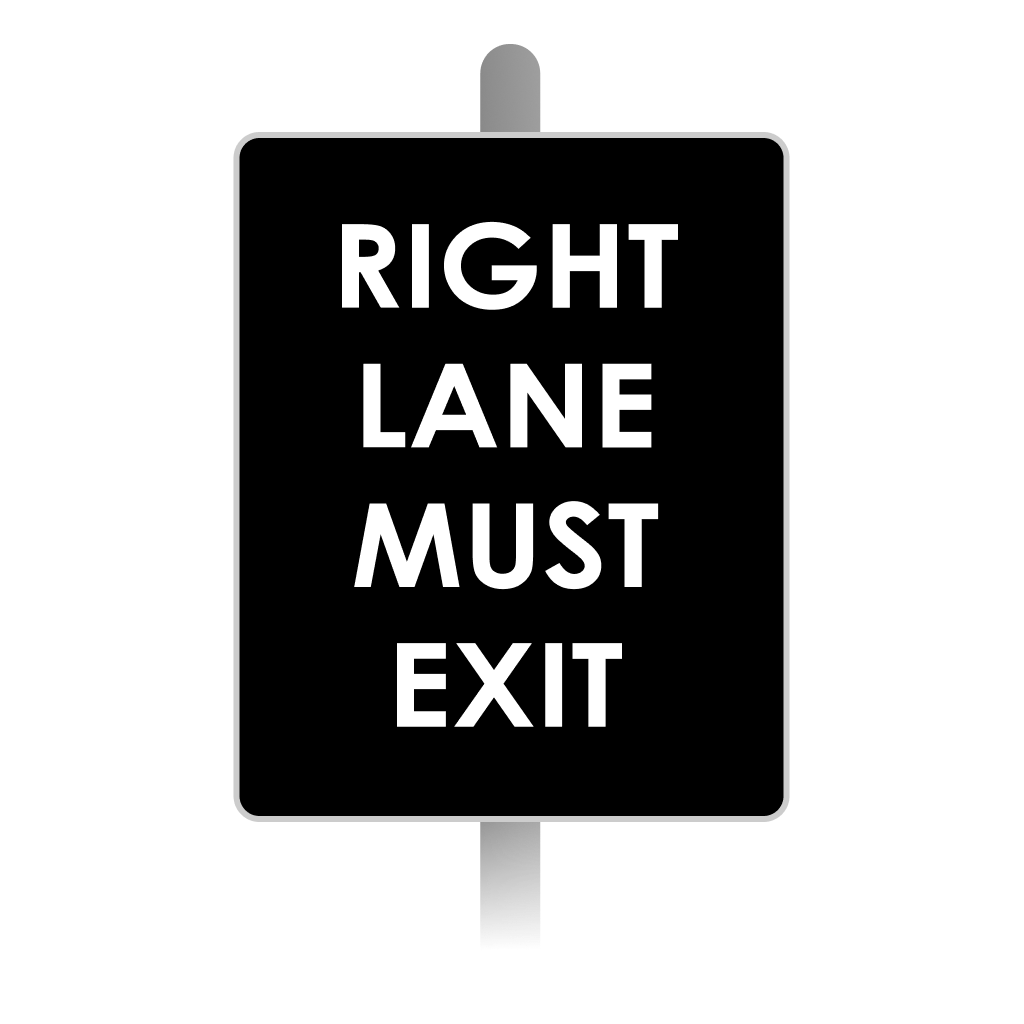 You must exit if you remain in the right-hand lane. | Lane Use Signs | 2024-06-07 11:41:21 | Edit |